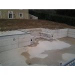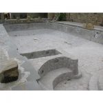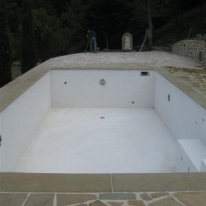 Rivestimento con piastrelle, mosaico o pietre di varia natura: La tecnica di costruzione è quella adottata per qualsiasi opera di ingegneria civile: effettuato lo scavo e livellato il fondo con uno strato di calcestruzzo magro, vengono disposti i ferri di armatura della soletta e delle pareti e le casserature laterali. Queste armature sono calcolate in base alle caratteristiche di portanza del sottosuolo, alle spinte del terreno e all’altezza dell’acqua della vasca. Il montaggio dell’impianto di filtrazione e dei collegamenti idraulici è uguale alle strutture prefabbricate. La scelta del cemento armato diventa obbligata quando si vuole rivestire la piscina con piastrelle, mosaico o pietre di varia natura.